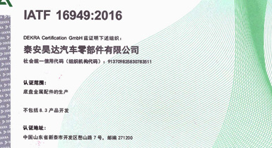 泰安昊达汽车零部件有限公司位于新泰市经济开发区嶅山路7号,公司成立于2011年,是一家生产中、重型卡车底盘铸锻件、焊接件、发动机配件的专业厂家,厂区占地面积101亩,2018年建设年产300万件汽车零部件项目,项目总投资3.16亿元,总建筑面积3.6万平方米,是新泰市汽车装配产业链的重点项目、2018年、2019年泰安重点项目,现已建设完毕,于2019年1月1日正式投入使用,设备新上覆膜砂自动化铸造生产线1条、热模锻生产线6条、自动化焊接生产线10条、CNC加工设备200余台套。 主要产品:中、重卡车底盘配件、转向配件、中后桥气室支架总成、中后桥配件、前桥转向节臂、焊接配件、发动机配件。产品主要销往中国重汽集团、市场份额约50%,位居行业铸件产品前三。 公司拥有IATF16949:2016国际标准质量管理体系认证,拥有实 ......