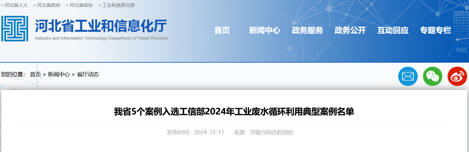 我省5個案例入選工信部2024年工業廢水循環利用典型案例名單近日,工業和信息化部公布了2024年工業廢水循環利用典型案例名單,我省5個案例入選,入選數量位居全國第二。其中河北新金鋼鐵有限公司、河鋼樂亭鋼鐵有限公司、首鋼股份公司遷安鋼鐵公司、唐山三友氯堿有限責任公司入選用水過程循環典型模式,河北普陽鋼鐵有限公司入選技術裝備創新典型模式。此前,首鋼股份公司遷安鋼鐵公司、河北普陽鋼鐵有限公司曾入選2022年工業廢水循環利用試點企業?! 」I廢水循環利用典型案例是查看詳情>>