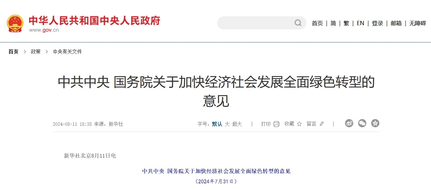中共中央 國務院關于加快經濟社會發展全面綠色轉型的意見中共中央 國務院關于加快經濟社會發展全面綠色轉型的意見(2024年7月31日)推動經濟社會發展綠色化、低碳化,是新時代黨治國理政新理念新實踐的重要標志,是實現高質量發展的關鍵環節,是解決我國資源環境生態問題的基礎之策,是建設人與自然和諧共生現代化的內在要求。為加快經濟社會發展全面綠色轉型,現提出如下意見。一、總體要求堅持以習近平新時代中國特色社會主義思想為指導,深入貫徹黨的二十大和二十屆二中、三中查看詳情>>