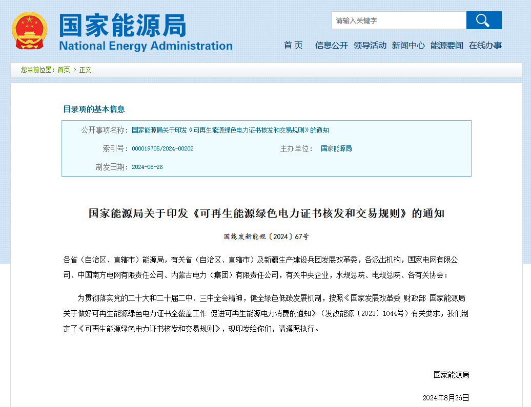國家能源局關于印發《可再生能源綠色電力證書核發和交易規則》的通知可再生能源綠色電力證書核發和交易規則第一章 總 則第一條為規范可再生能源綠色電力證書(Green Electricity Certificate(GEC),以下簡稱綠證)核發和交易,依法維護各方合法權益,根據《國家發展改革委 財政部 國家能源局關于做好可再生能源綠色電力證書全覆蓋工作 促進可再生能源電力消費的通知》(發改能源〔2023〕1044號)等要求,制定本規則。第二條本規則適用于我國境內生產查看詳情>>