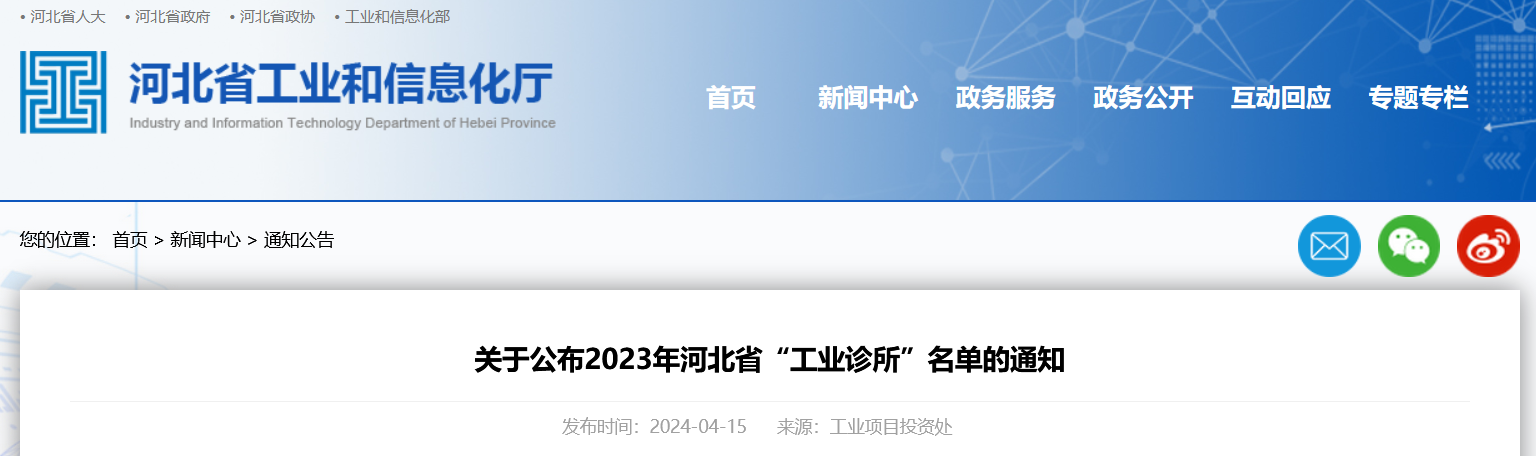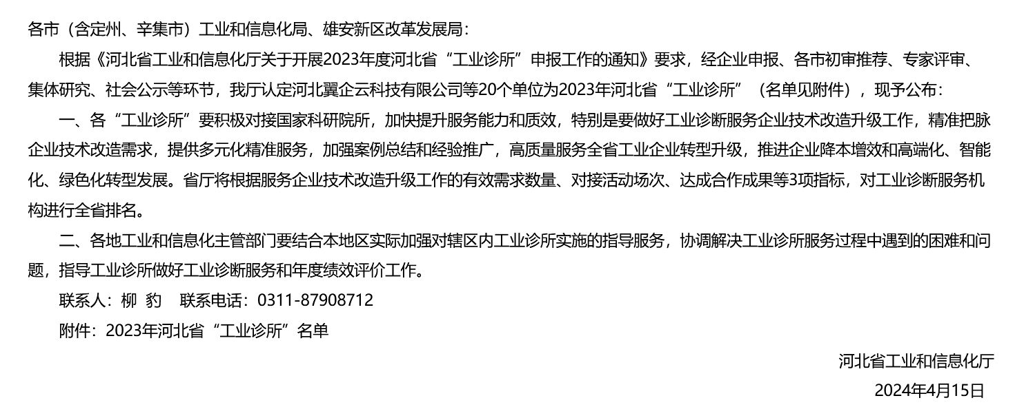 河北冀鑒成功入圍2023年河北省工信廳“工業診所”名單